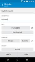 HTC Tasks memudahkan untuk mengatur daftar tugas dan melacak tanggal jatuh tempo. Cukup selaras ponsel Anda dengan akun Microsoft Exchange ActiveSync dan Google Anda untuk melihat semua tugas Anda di satu tempat. Anda juga dapat melihat tugas Anda di aplikasi Kalender HTC.